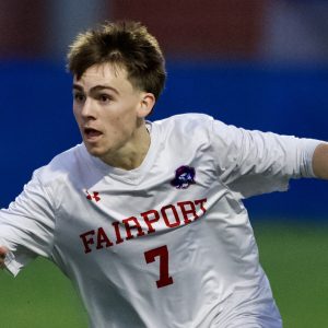 Reigning state champs will face Commack of Section XI in Sunday’s final. By PAUL GOTHAM MIDDLETOWN, N.Y. — There was no need for a second-half rally this time. Fairport boys’ soccer (18-0-0) took a 1-nil lead into halftime and cruised to a 4-0 win over Guilderland (12-6-3) of Section II in the New York State Public High School Athletic Association (NYSPHSAA) Class AAA … [Read more...] about Griffin nets hat trick; Fairport returns to state championship game