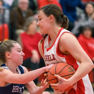 CLASS AA1 No. 8 BRIGHTON (6-16) 35No. 1 PENFIELD (19-1) 76Alivia Duckles dropped 10 of her game-high 16 points in the first half to help Penfield outscore Brighton 46-14 through 16 minutes of action. The freshman hit four times from the floor including two 3-pointers as the Patriots advanced to the Class AA1 semifinals. Adriana Ferraro followed scoring 11 of her 14 … [Read more...] about Friday Girls’ Basketball Wrap: Paddock, Wilson lead No. 6 Le Roy to Class B2 finals; Hart drops 24 to lead Webster Schroeder