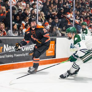 By KEVIN OKLOBZIJA So that year of rebuilding for Rochester Institute of Technology’s men’s hockey team that everyone expected? Turns out it was a week, not a year. At least that’s how it seems after the Tigers on Saturday evening completed a weekend sweep of winless Mercyhurst at the Gene Polisseni Center and improved to 7-2. Christian Catalano, Simon Isabelle and … [Read more...] about The roar in RIT men’s hockey has been restored; winning streak hits 7